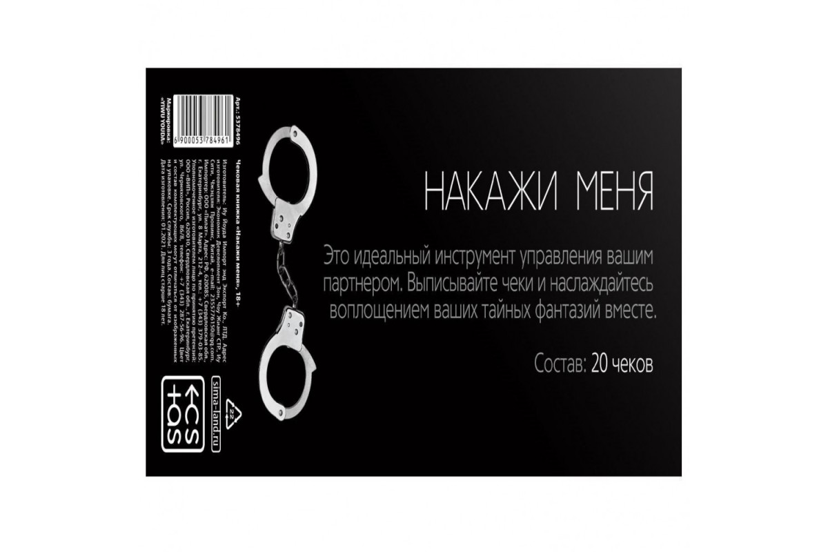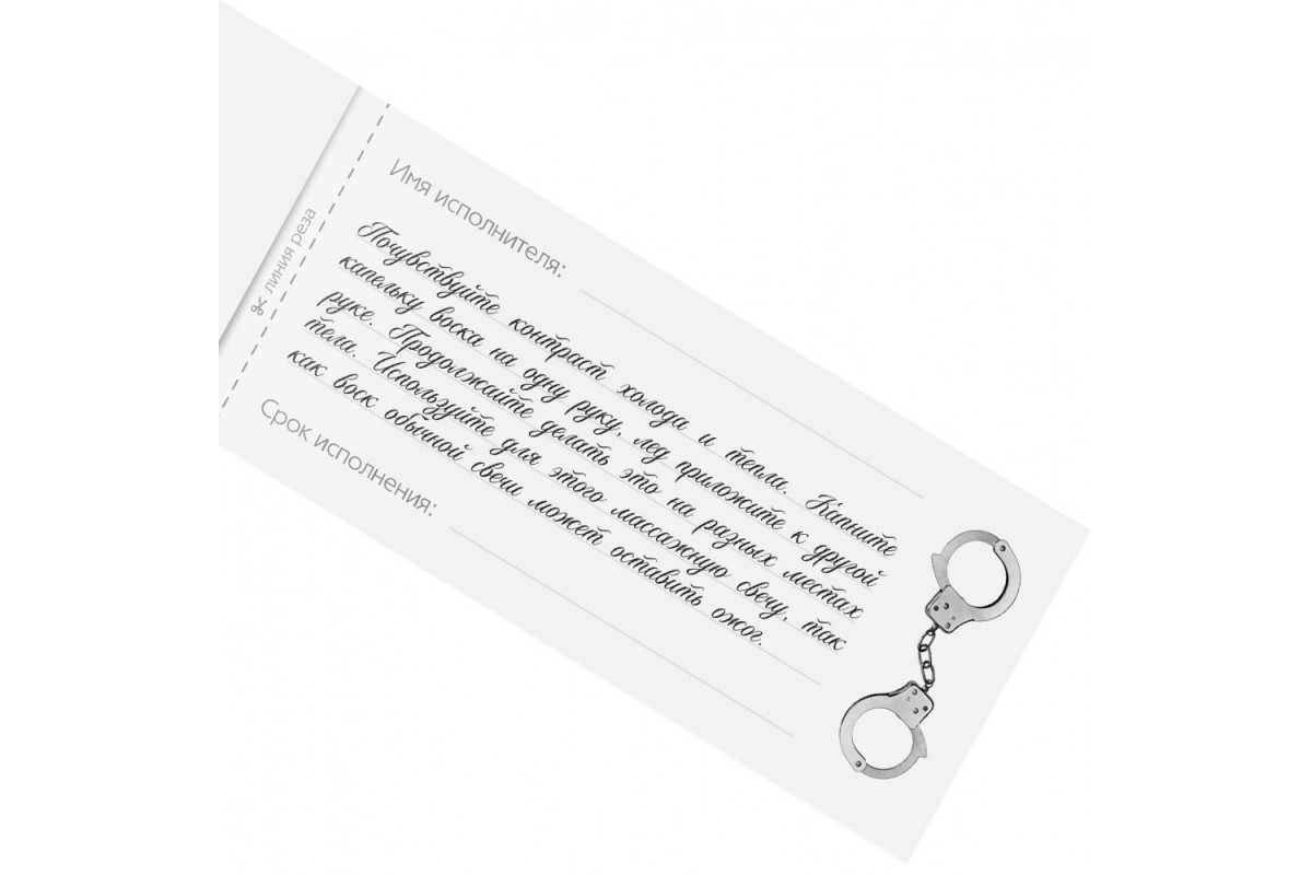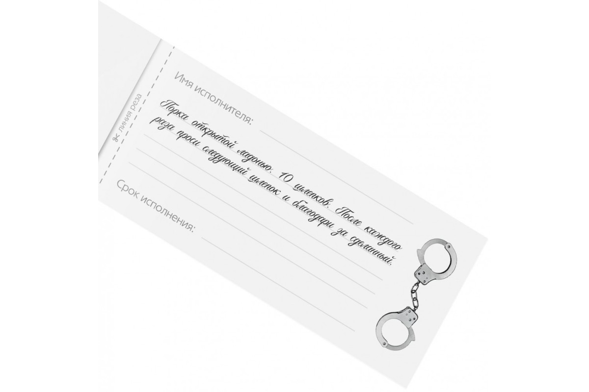 На каждом купоне необходимо указать имя исполнителя и срок исполнения наказания. Осталось только вручить чек и ждать!Внутри вы найдёте 20 чеков.Упаковка: пакет