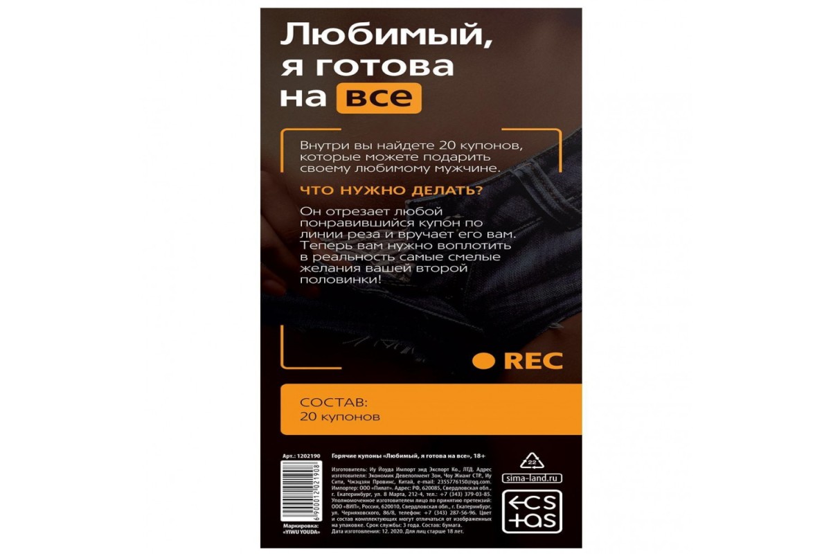 Внесите капельку страсти и нежности в ваши отношения! Исполнение желаний по заказу... Он оторвёт любую понравившуюся карточку и вручит её вам для исполнения.Воплотите самые смелые фантазии второй половинки!