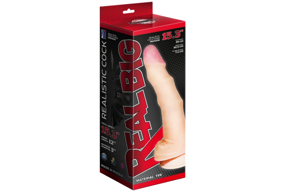 Рельефный фаллос-супергигант с присоской Real Big 39 см