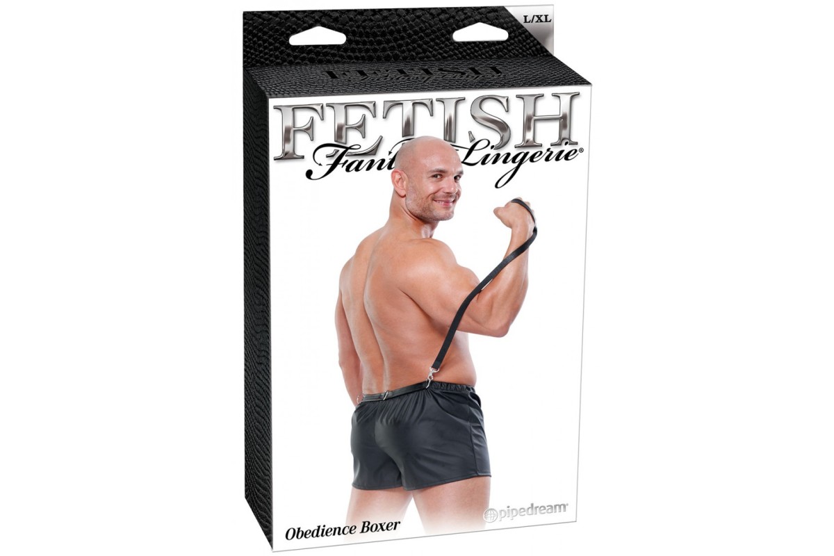 Черные мужские боксеры с поводком Fetish Obedience Boxer L/XL