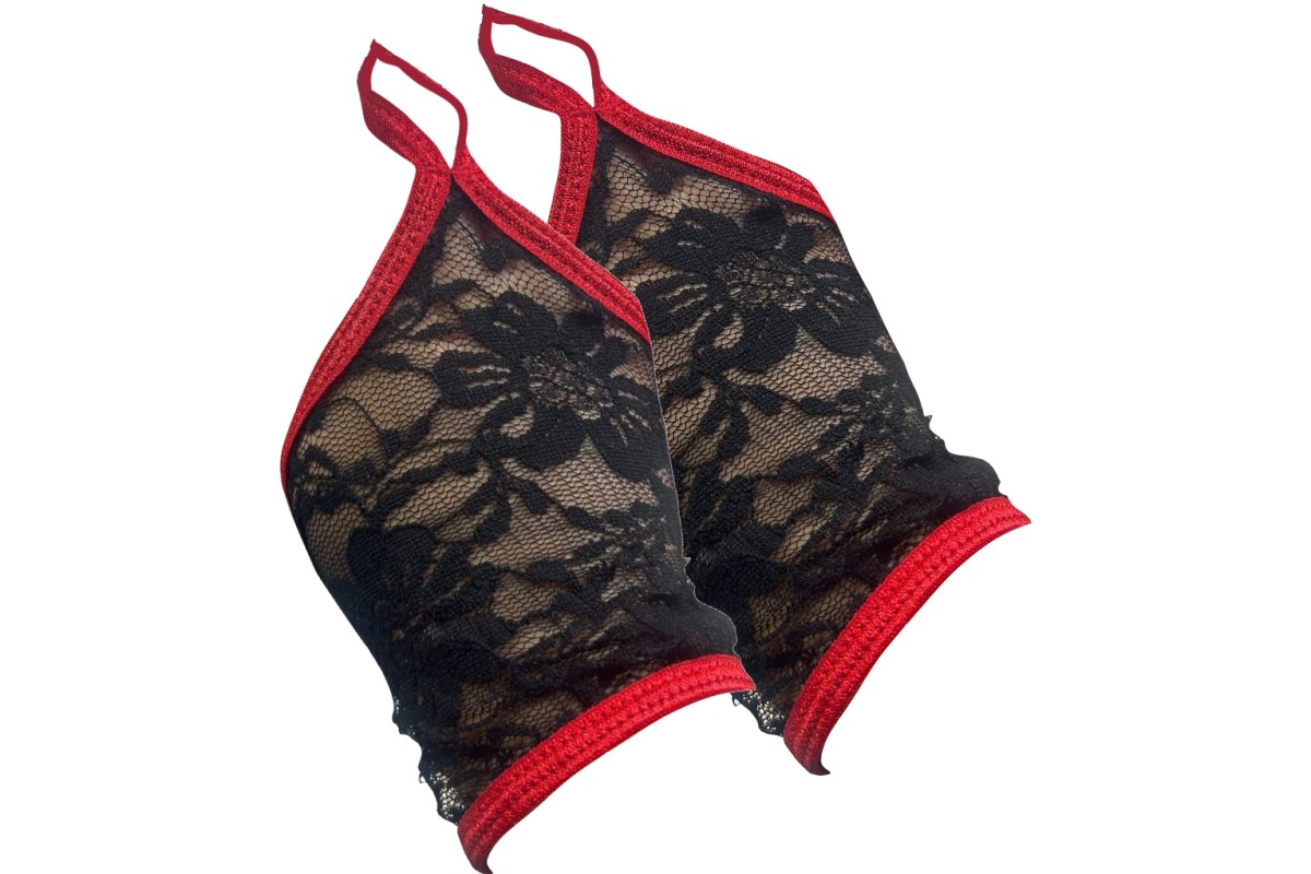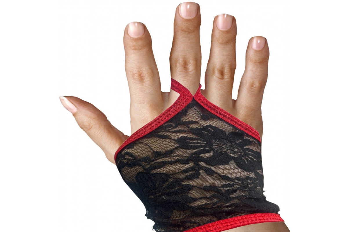 Изящные черно-красные митенки из кружева OS