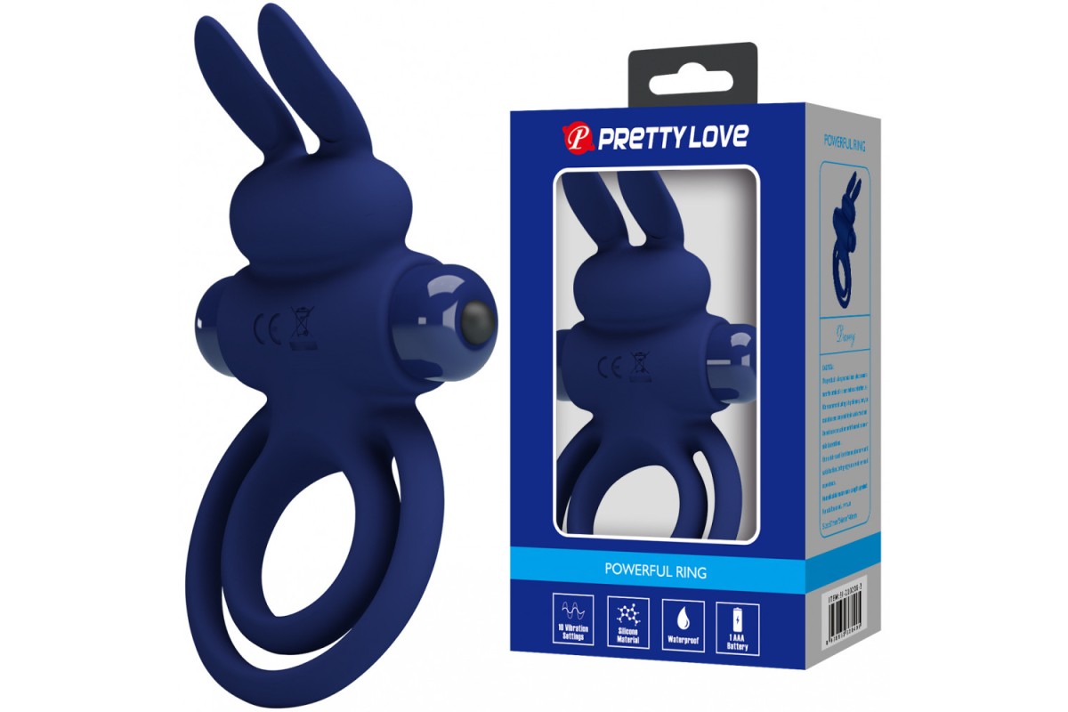 Эрекционное виброкольцо Pretty Love Vibrant Penis Ring III с петлей на мошонку синее