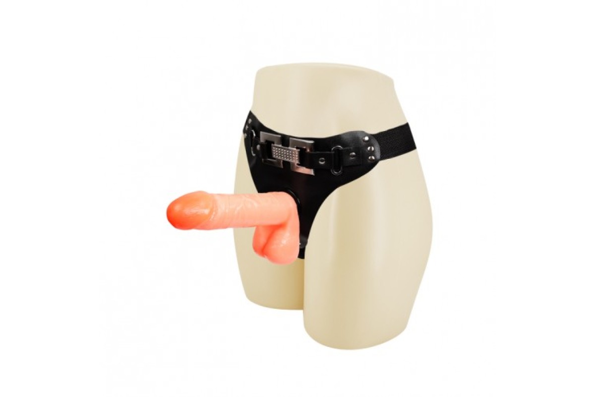 Телесный реалистичный страпон на трусиках 17 см