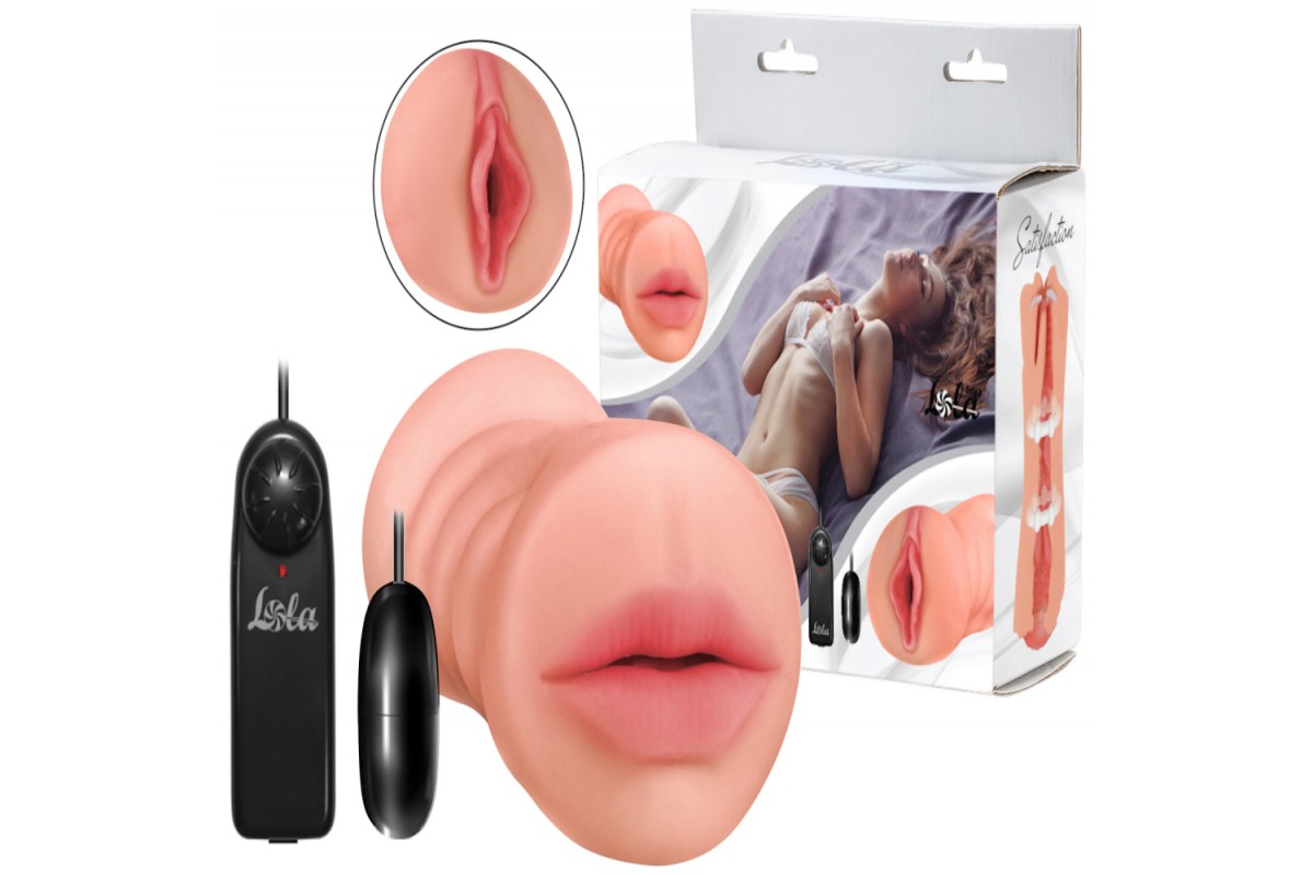Двойной мастурбатор с вибрацией ротик с зубками и вагина Satisfaction Lucky Charm
