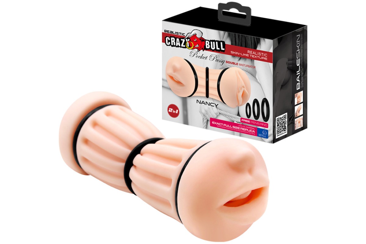 Двусторонний мастурбатор Crazy Bull Nancy вагина и ротик с уплотняющими кольцами