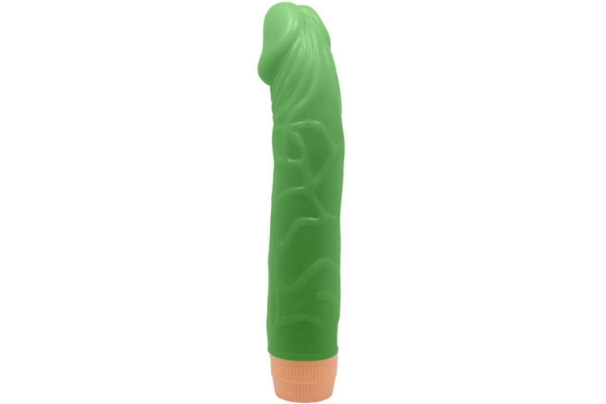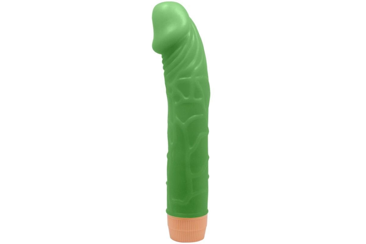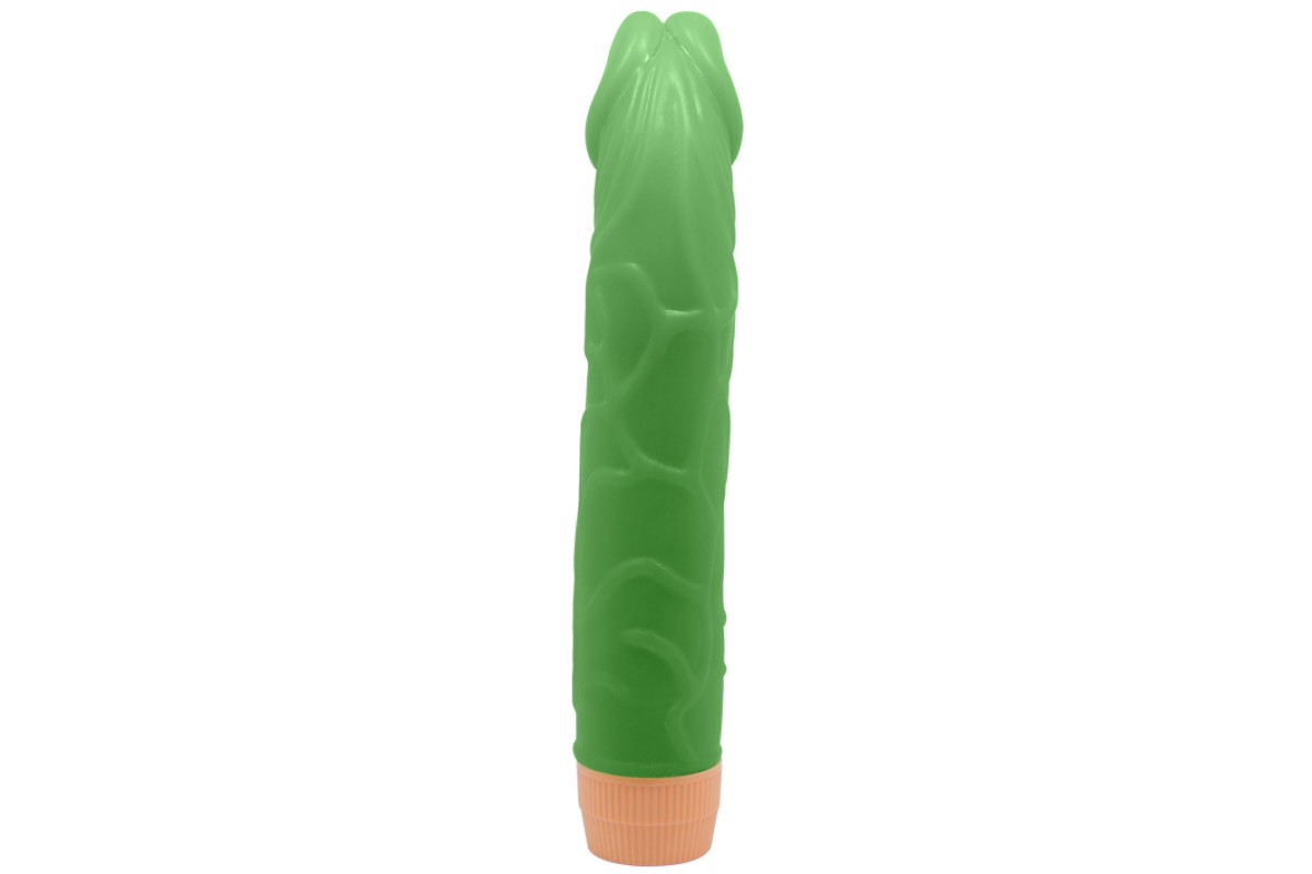 Светящийся в темноте зеленый вибратор с загнутой головкой Bill 23 см