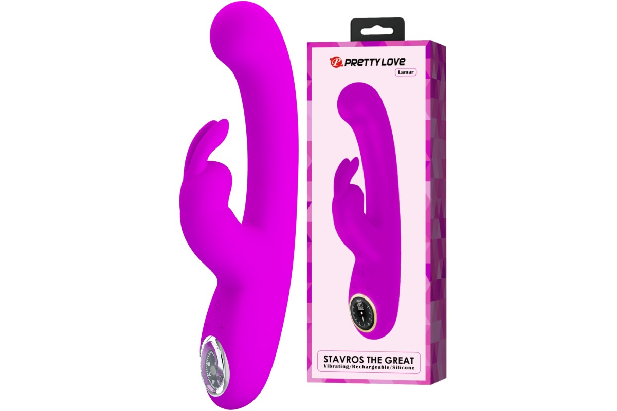 Перезаряжаемый вибратор с клиторальным стимулятором-кроликом и LED-экраном Pretty Love Lamar розовый