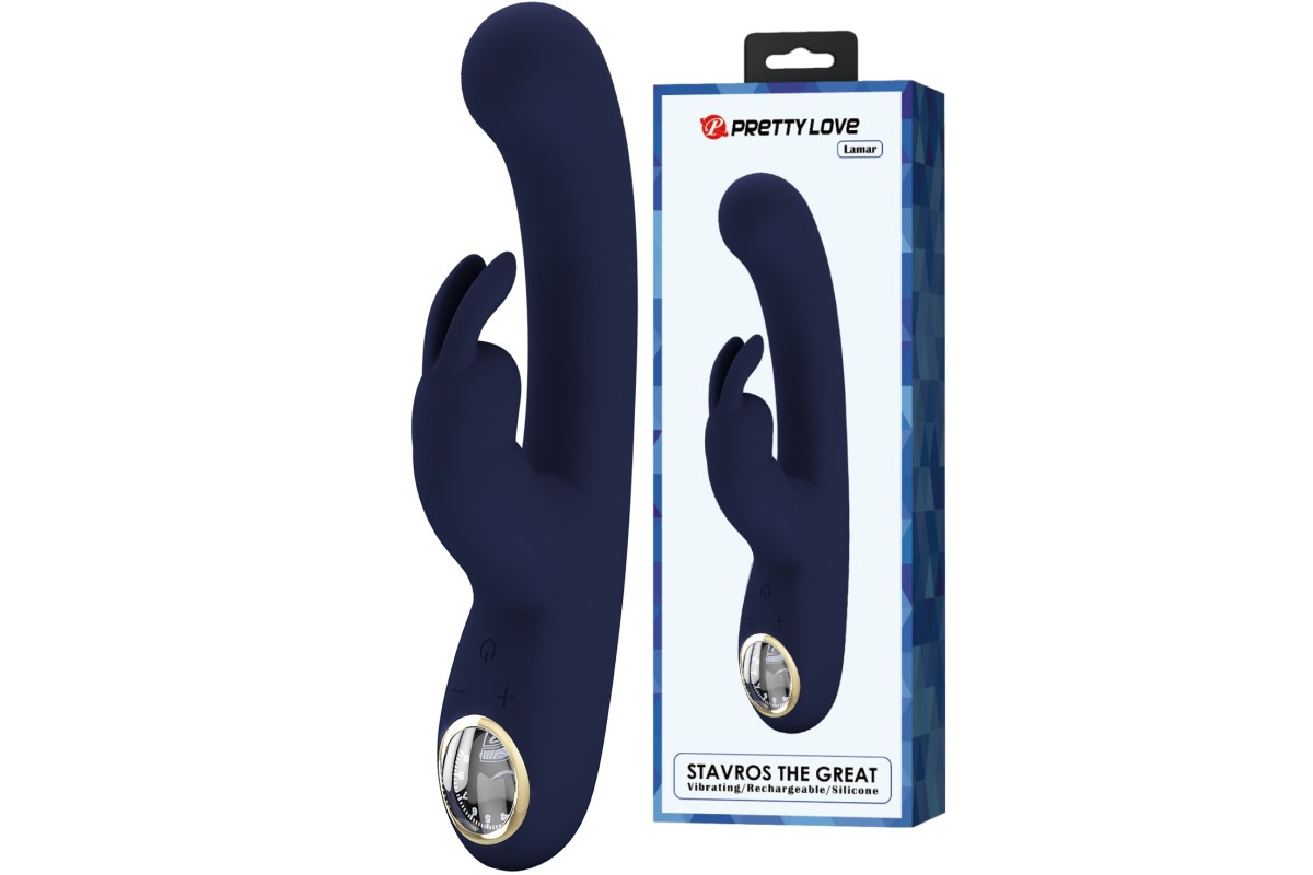 Перезаряжаемый вибратор с клиторальным стимулятором-кроликом и LED-экраном Pretty Love Lamar синий