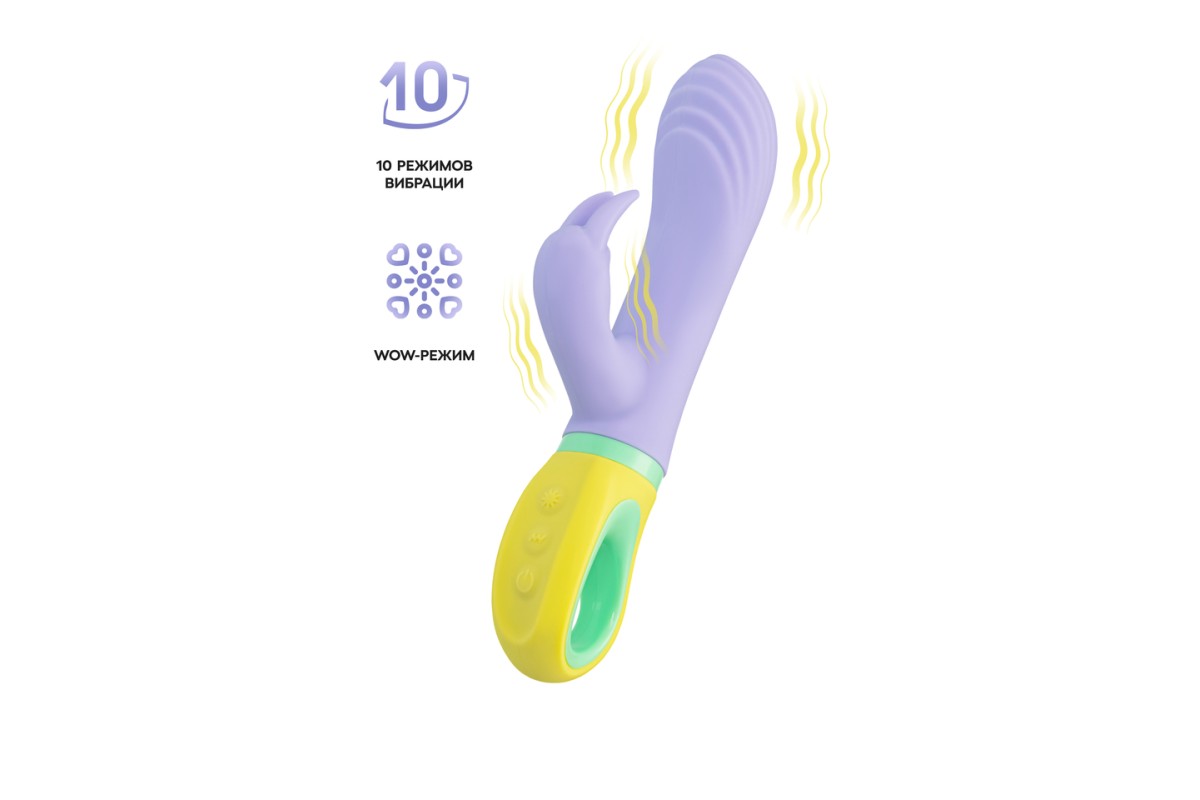 Вибратор для точки G с клиторальной стимуляцией. Компактный вибратор классической формы с клиторальным стимулятором. Вздутая головка вибратора предназначена для стимуляции точки G. Игривые ушки кролика на клиторальном отростке помогут достичь кульминации в самый важный момент. На панели управления три кнопки: кнопка включения вибратора, кнопка переключения режимов вибрации и кнопка включения самого мощного режима. Изготовлен из высококачественного бархатистого силикона. Работает от батареек 2*ААА (не входят в комплект).