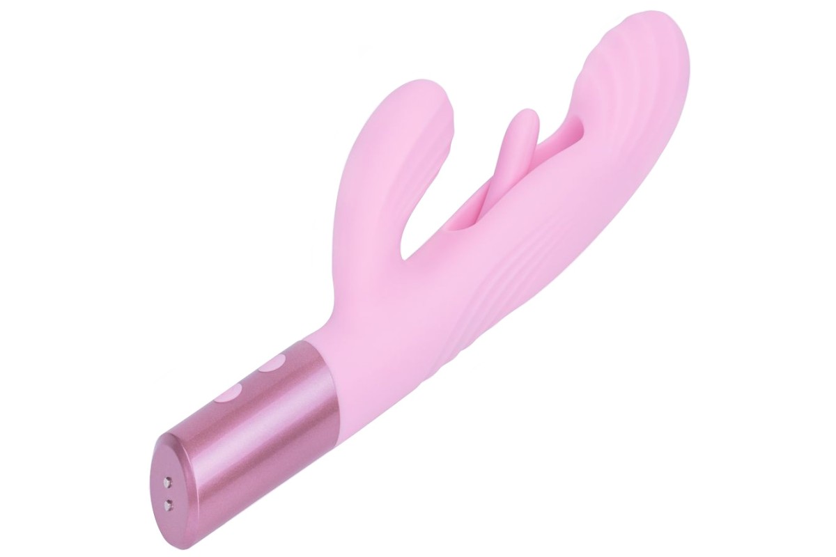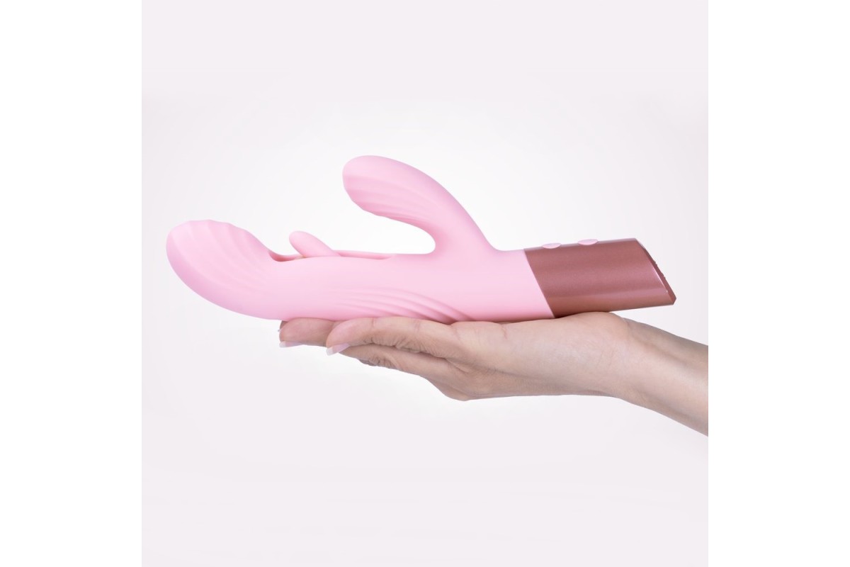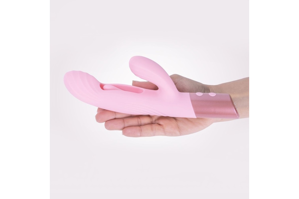 Розовый вибратор-пульсатор с клиторальным стимулятором и движущимся язычком для зоны G Selove Fluttery