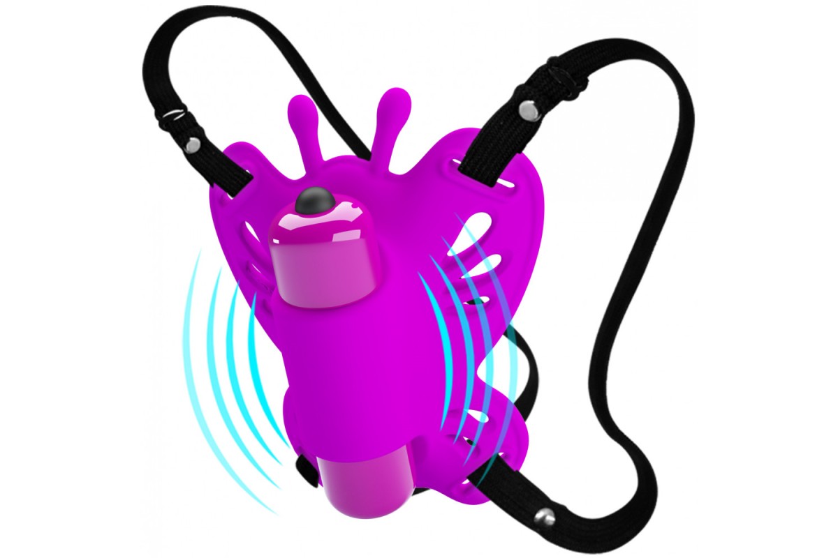 Клиторальный вибростимулятор-бабочка на ремешках Pretty Love Sloane