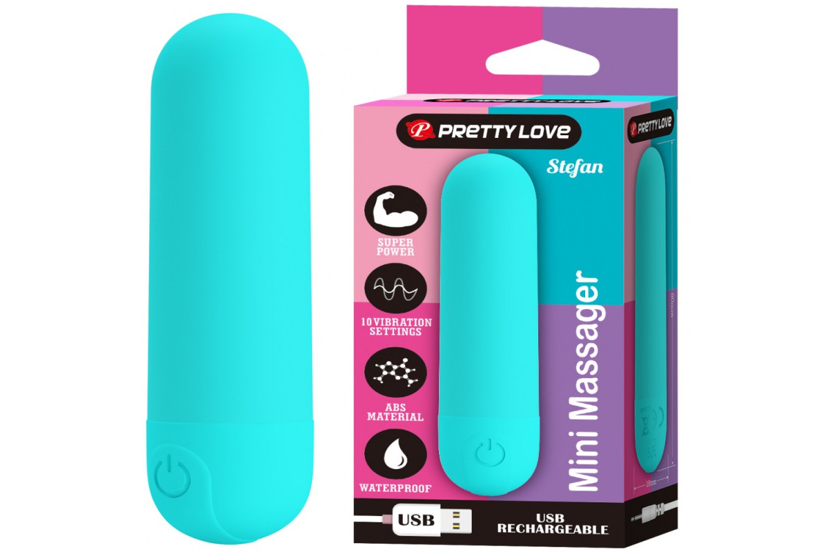 Перезаряжаемая вибропуля Pretty Love Stefan с 10 режимами вибрации бирюзовая